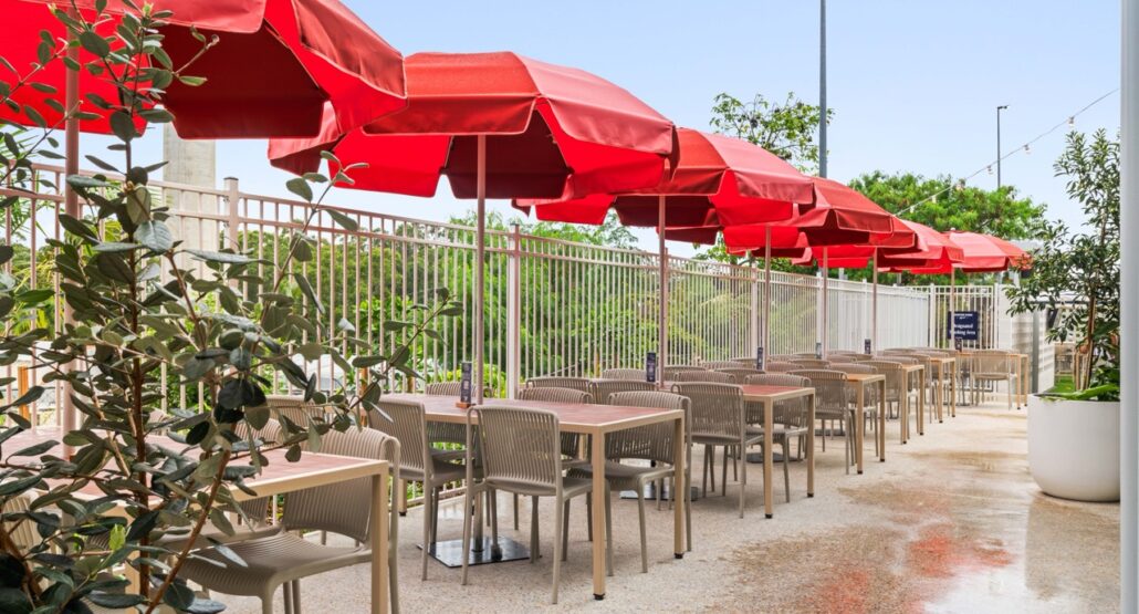 In our Beer Garden, it’s summer all year round! Celebrate under the open sky in this vibrant space, featuring its own bar, festoon lights, and picnic- style tables with individual umbrellas. Big screens broadcasting live sports add an extra layer of excitement, making the Beer Garden the perfect spot for a laid-back yet lively celebration.